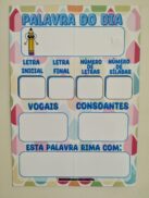 Para poder escrever no cartaz, é necessário plastificar ou passar papel contact transparente. Usei velcro para colocar os cards no cartaz.