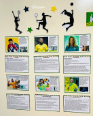 Cada atleta é apresentado de forma breve, destacando conquistas e histórias inspiradoras que motivam alunos e valorizam a cultura esportiva nas escolas.