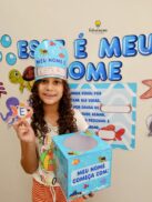 Painel com cartaz para trabalhar musicalização do nome próprio;