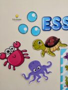 Luva interativa com peixinhos para colocar o nome das crianças;