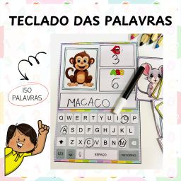 O material acompanha: um teclado em formato de tablete e 150 imagens para a identificação da escrita e leitura.